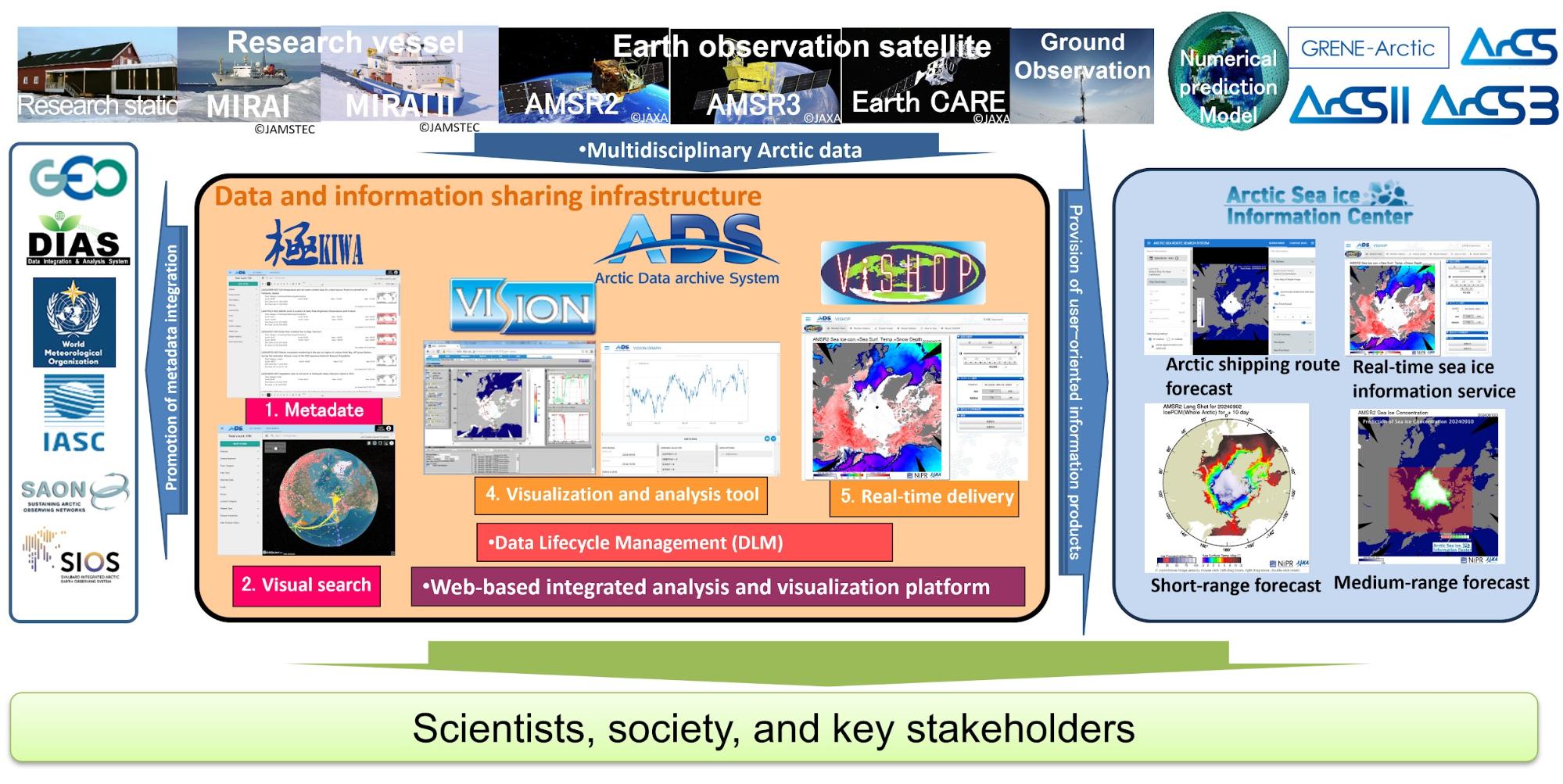 ADS focuses on developing a foundation for “Open Science” in Arctic research and promotes the domestic and international exchange of Arctic research “big data.” Meanwhile, the Arctic Sea Ice Information Center develops short- and medium-term forecasting models for Arctic Sea ice and disseminates related information.