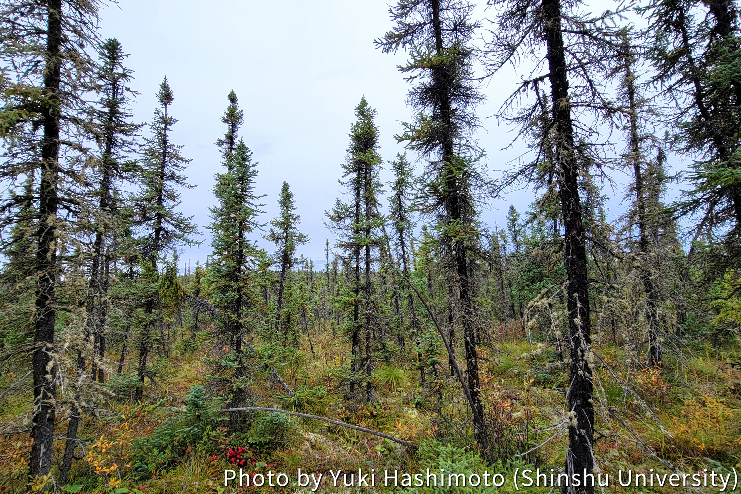 During the fieldwork, I investigated the tree roots in several forests with different permafrost thawing conditions. I focused on the roots of black spruce; an evergreen coniferous tree widely distributed across North America. (Photo 1)