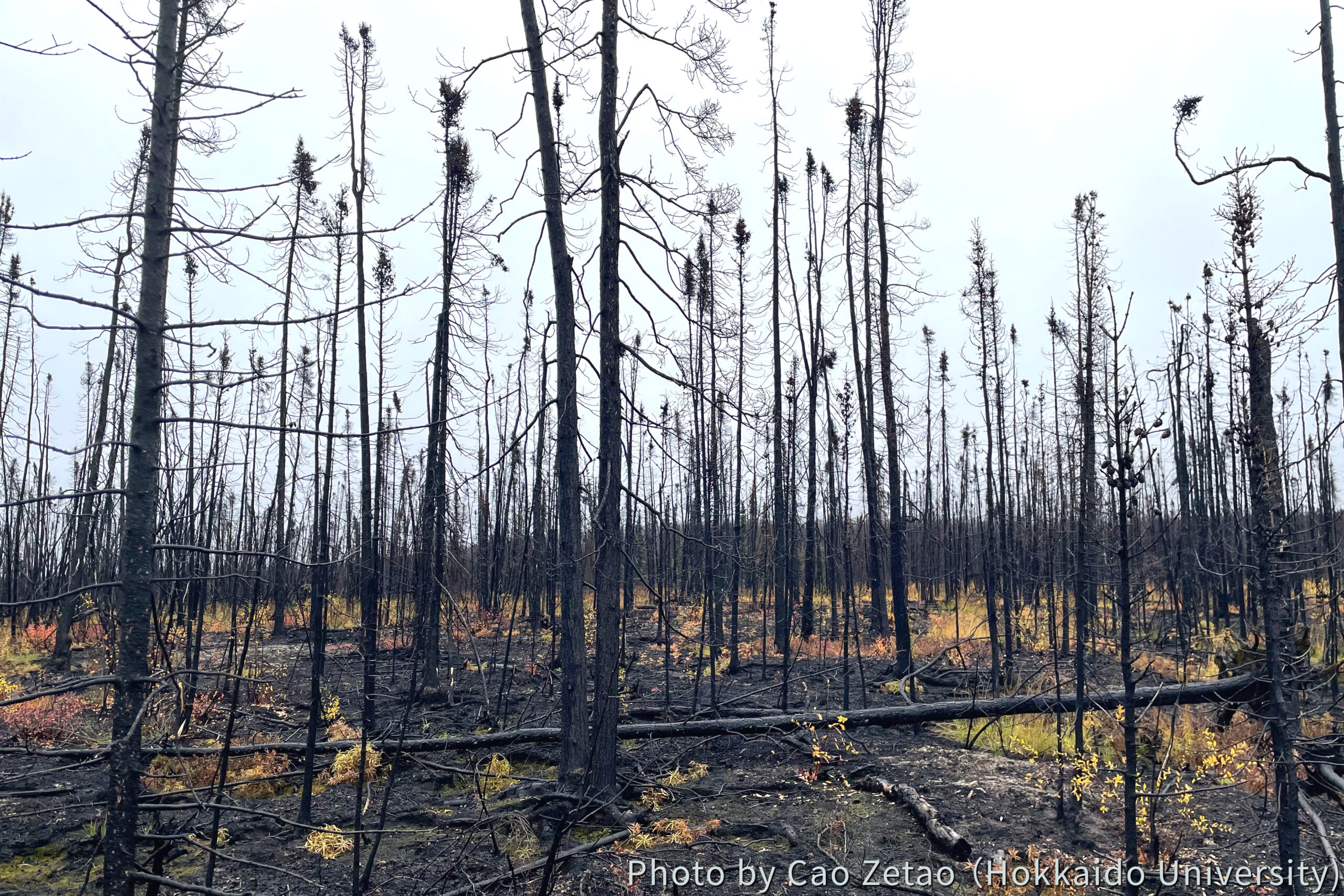 After three flights from Sapporo to Whitehorse, the Yukon Territories, Canada, and two days of driving along the Dempster Highway (Photo 1), we arrived at Eagle Plains, the only settlement with reliable accommodation in that area. From this base, we conducted daily excursions to both burned and unburned sites between approximately 30 and 70 km southwest of Eagle Plains.