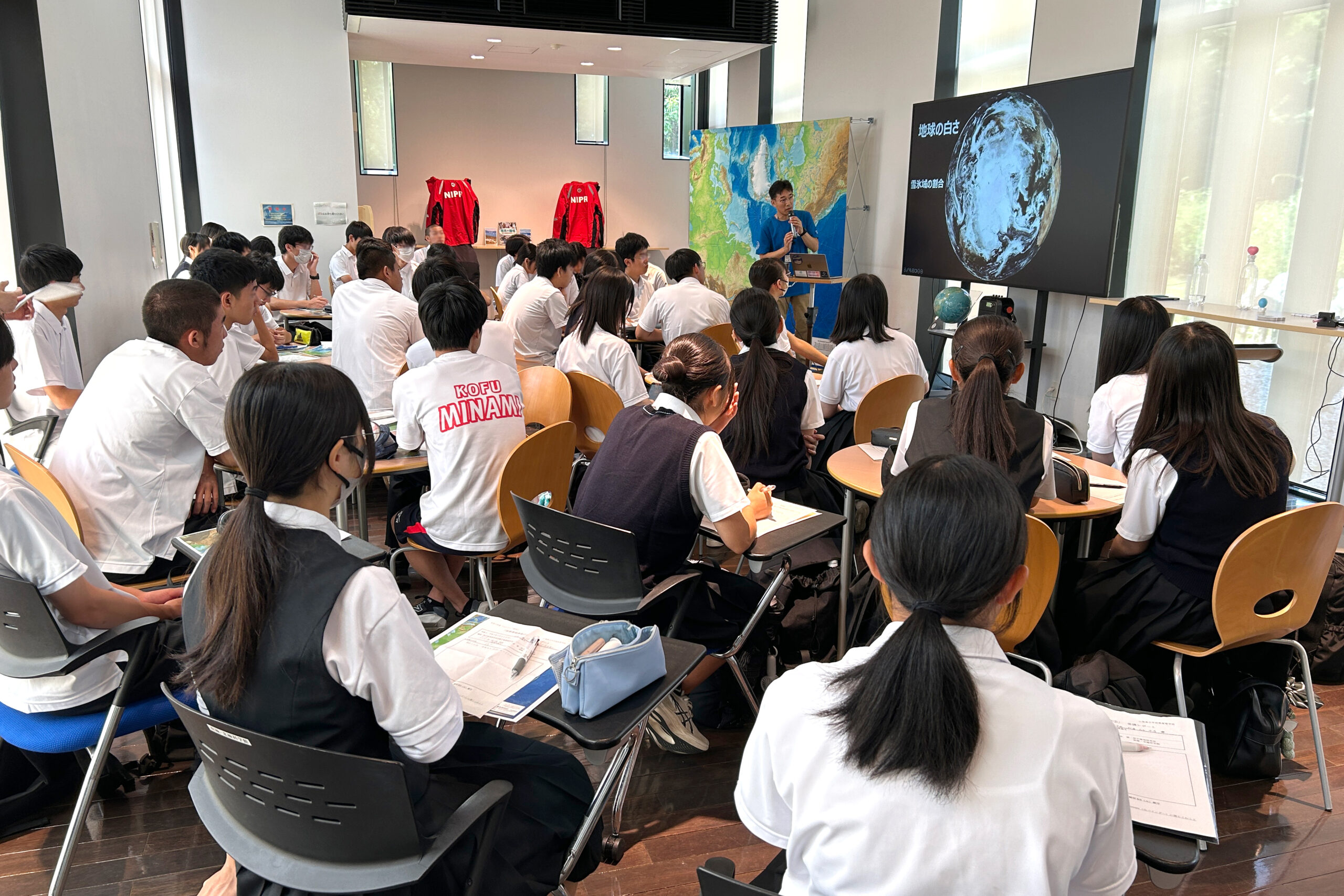 、山梨県立甲府南高校の生徒が、スーパーサイエンスハイスクール(SSH)事業フロンティア講座「国際環境講座」の一環として、国立極地研究所を訪問しました。講義は、猪上 淳SPD(国立極地研究所)による「雲をつかむには」というテーマで行われました。