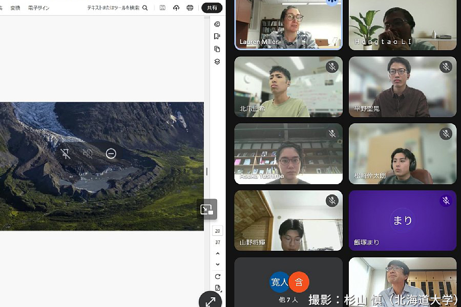 本プログラムは、本学の特徴ある研究分野である「南極」・「北極」を中心テーマとして、その概要と先端研究を学ぶ科目です。スイスとドイツから講師を招聘すると共に、オンラインを使ってアメリカの講師とも繋ぎ、北大教員を交えて実施する講義です。英語講義の聴講、海外研究者との質疑応答、受講自身の口頭発表などを通じて、参加者はコミュニケーション技術も習得しました。