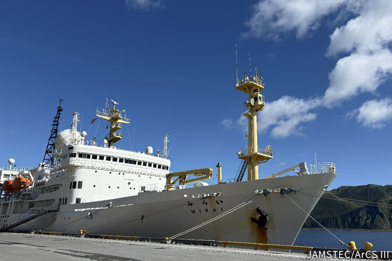 ホテルに荷物を置いて、散歩がてら船のほうまでテクテク歩いていくと、「みらい」が見えてきました。