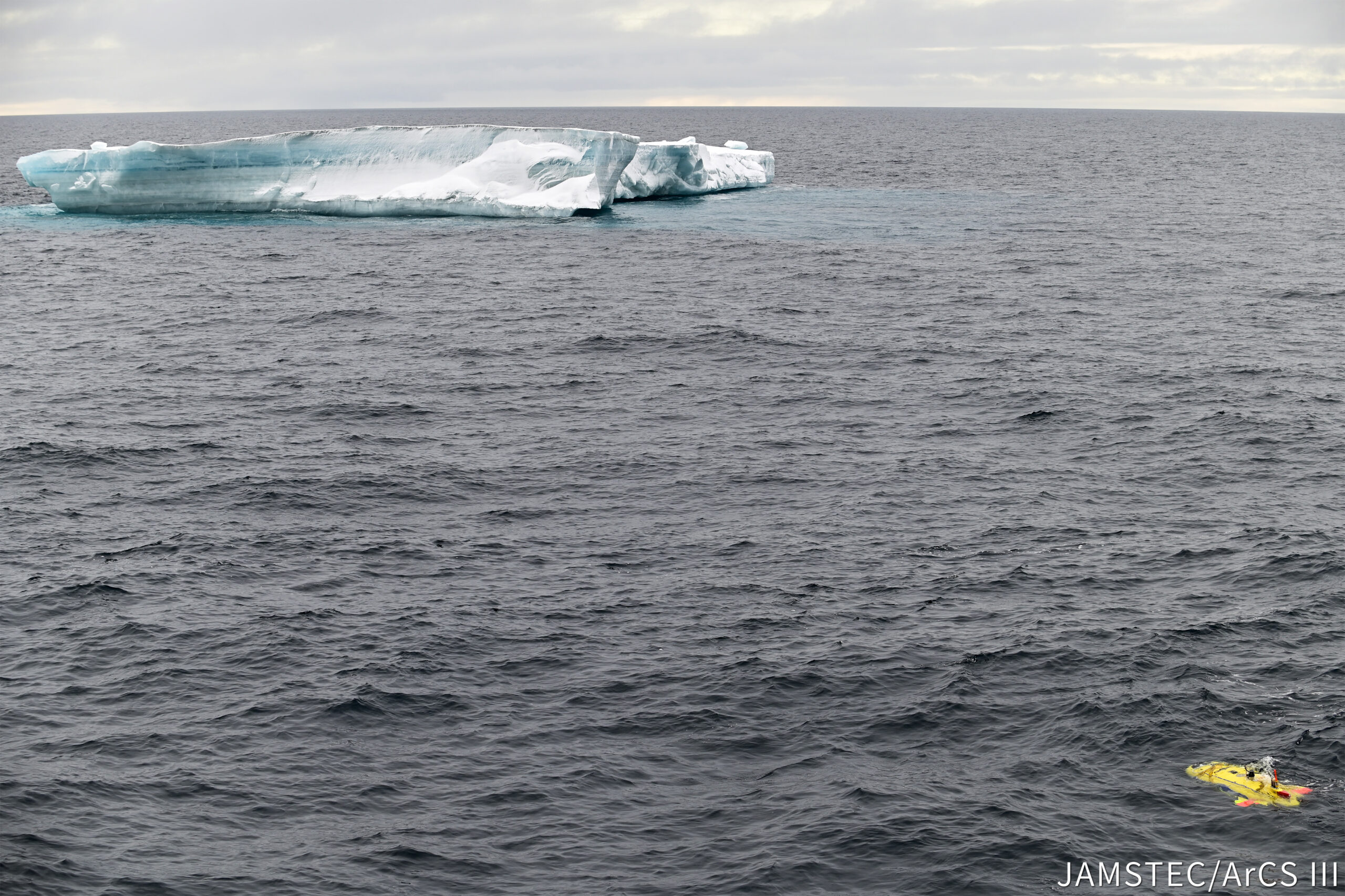 近年は、人力に頼らない航行を実現する自律式無人潜水機が注目されています。今航では、単なる自律式潜水ではなく、海氷の下も潜れるよう開発された無人潜水機COMAIの運用試験をしています。
