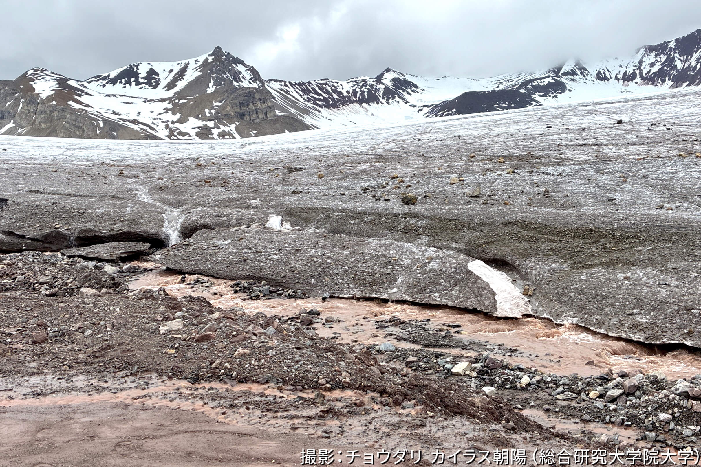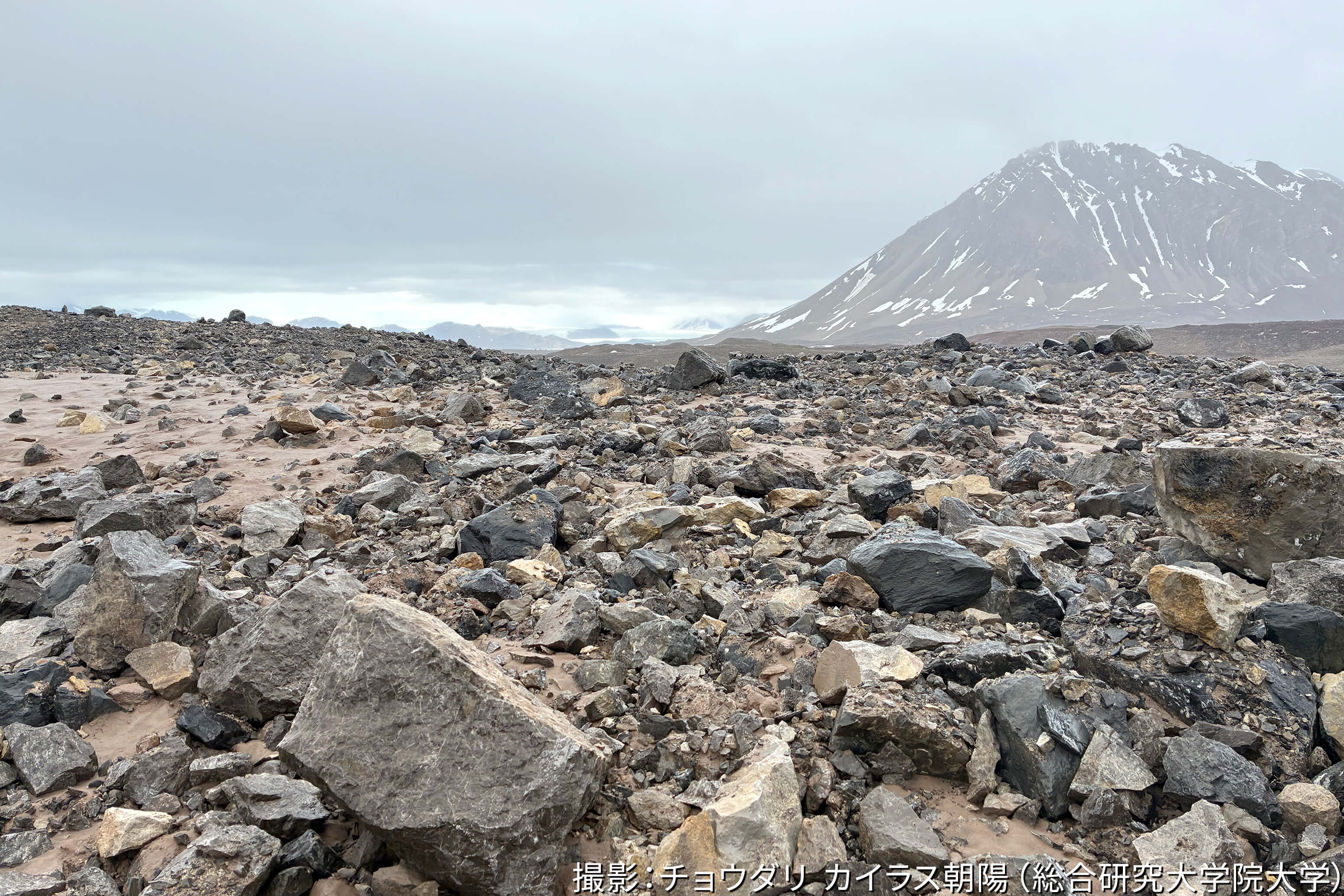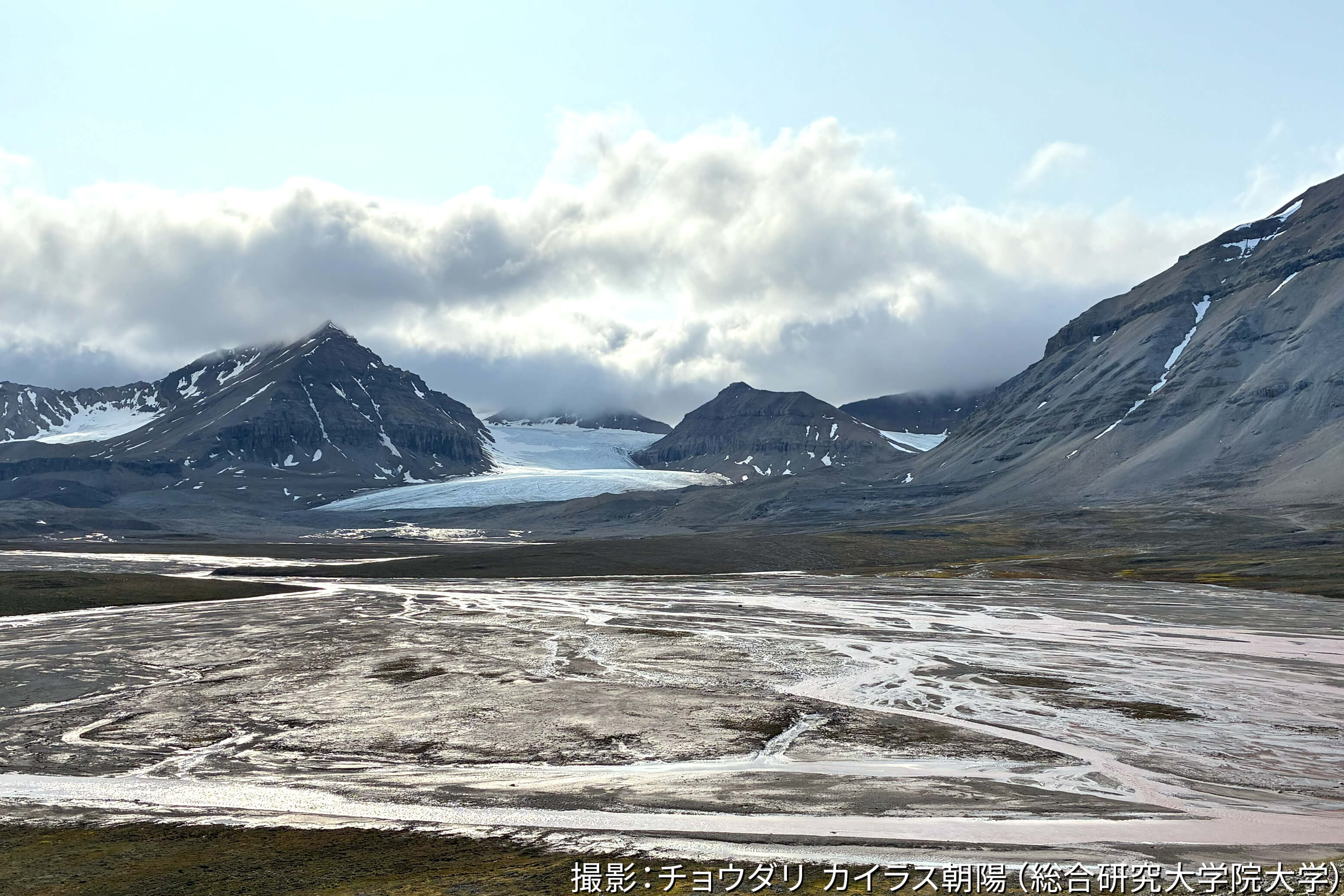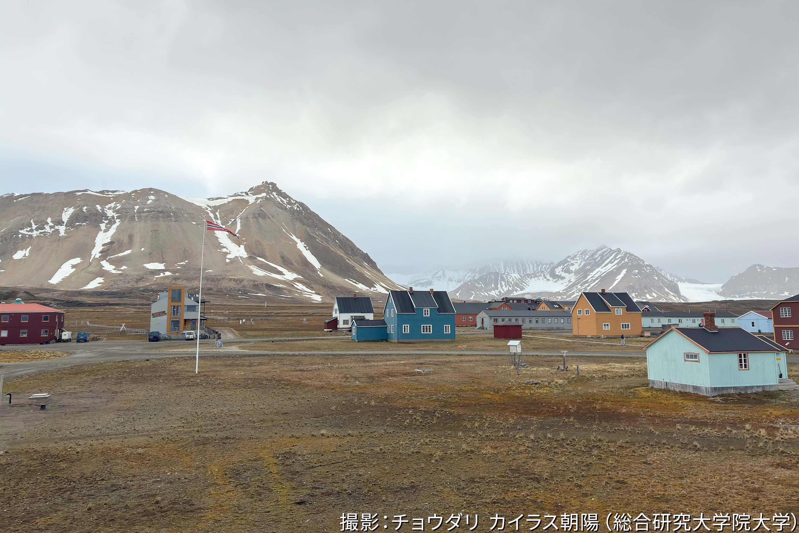 2025年の7月、スバールバル諸島ニーオルスン(ノルウェー)に滞在しました。今回が初めての北極圏滞在です!ニーオルスンにある各国の建物が北欧風で、遠方の山々とのコントラストも相まって素敵でした(写真1)。野外調査では、氷河の麓にあるアウトウォッシュ・プレーン(氷河からの流れる融解水の作用できた地形)に向かいました(写真2)。